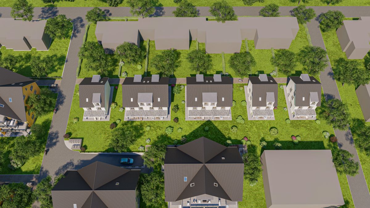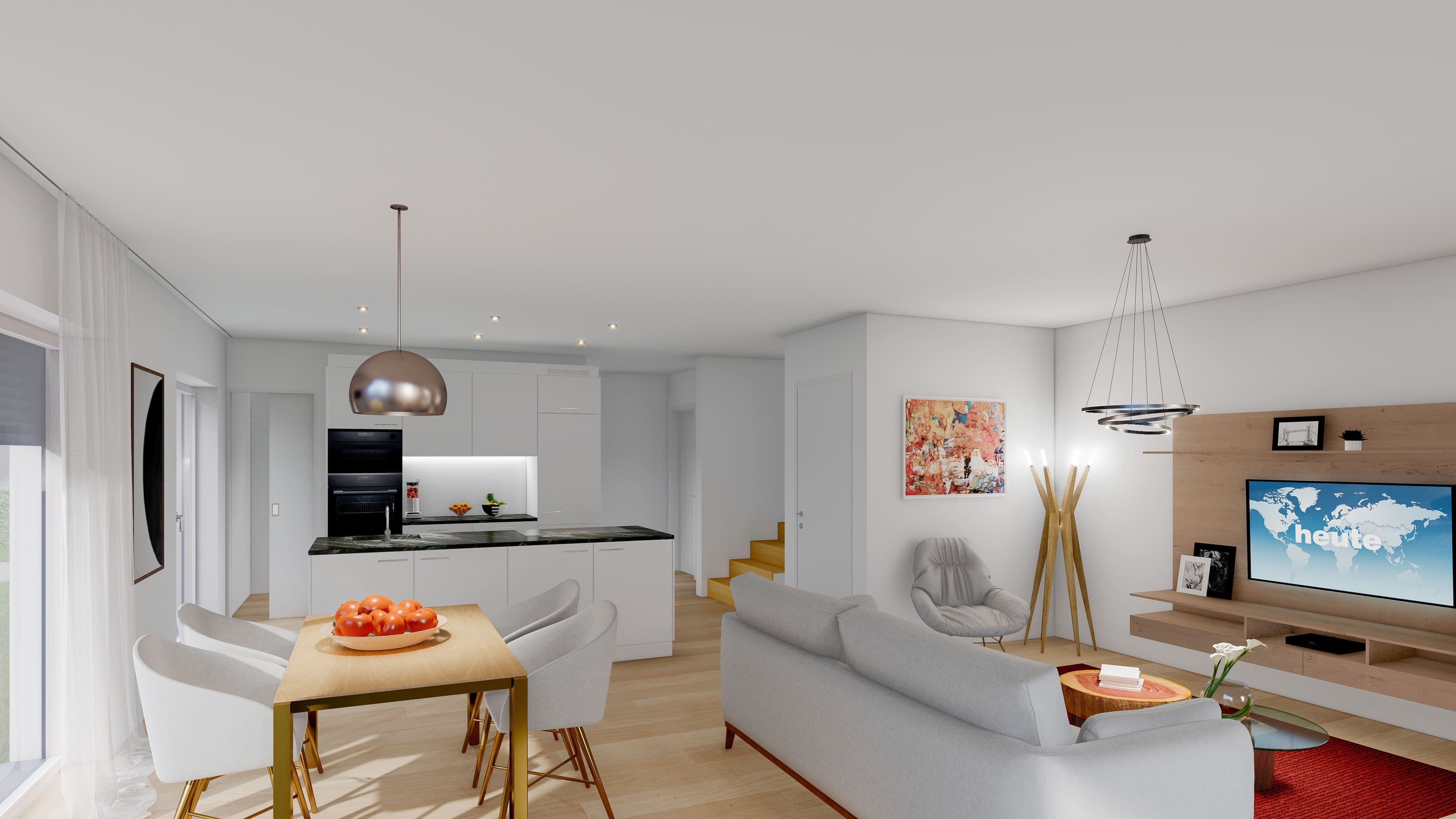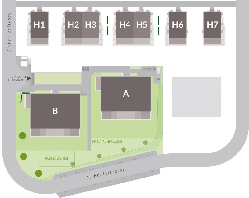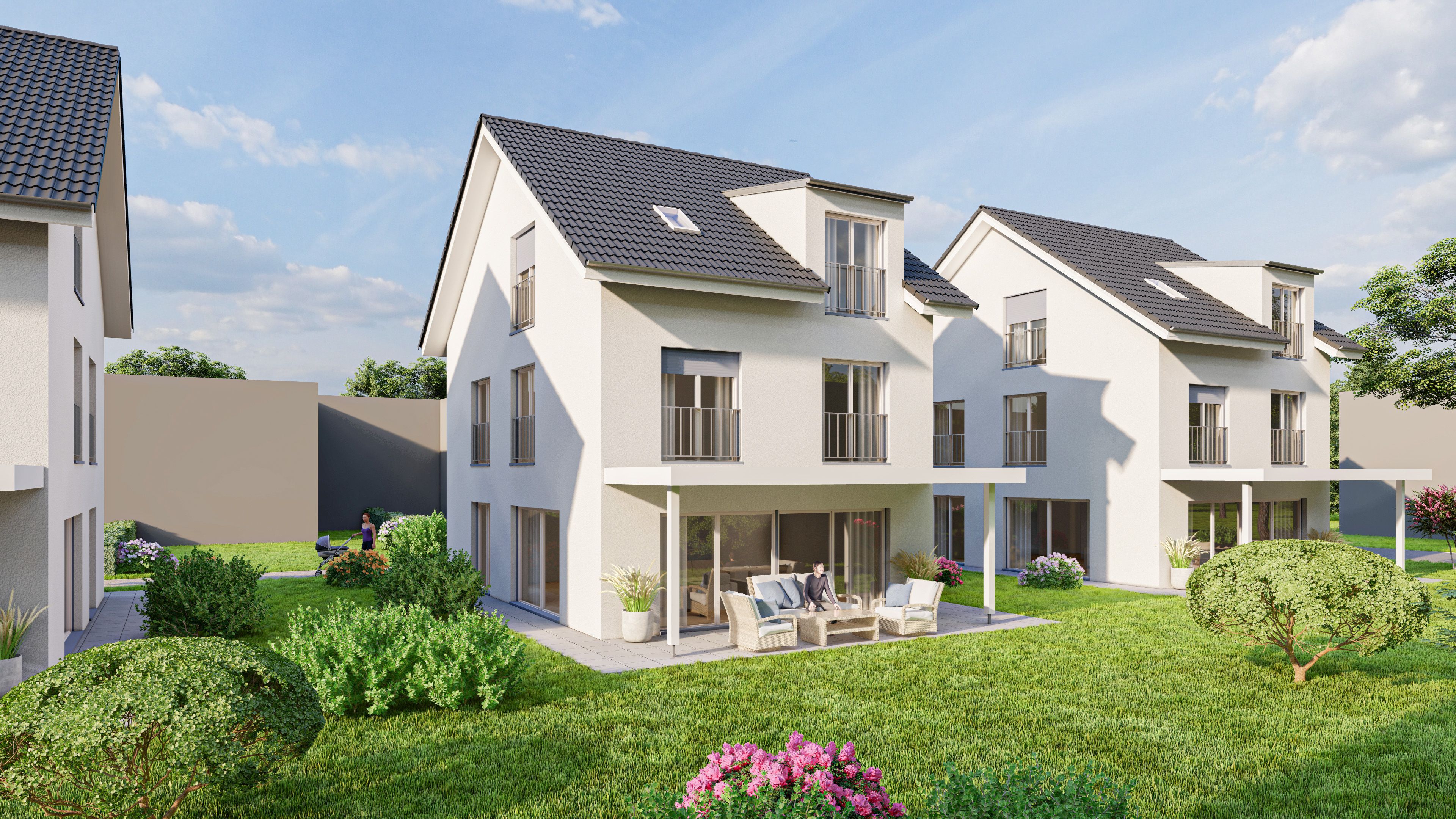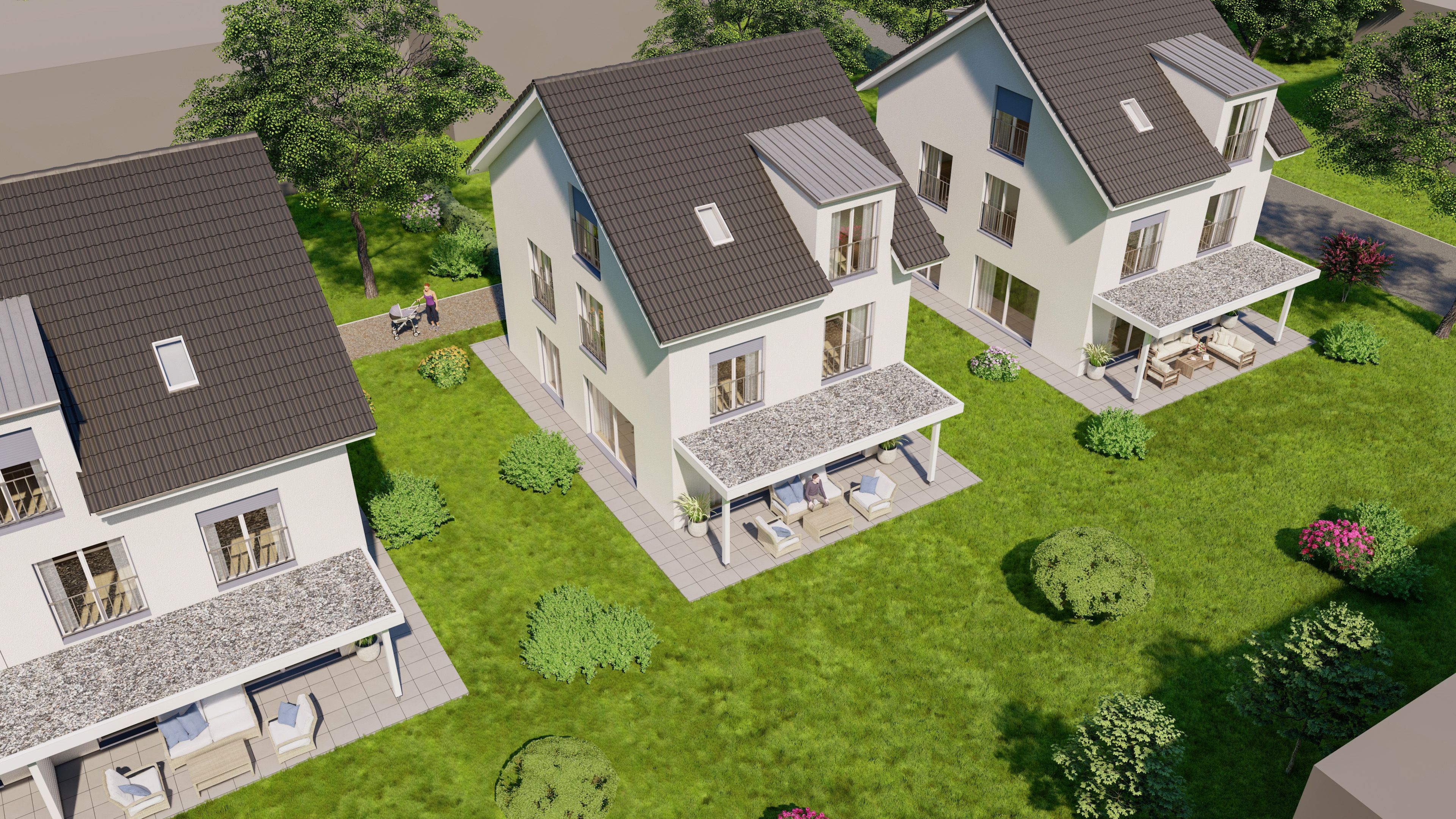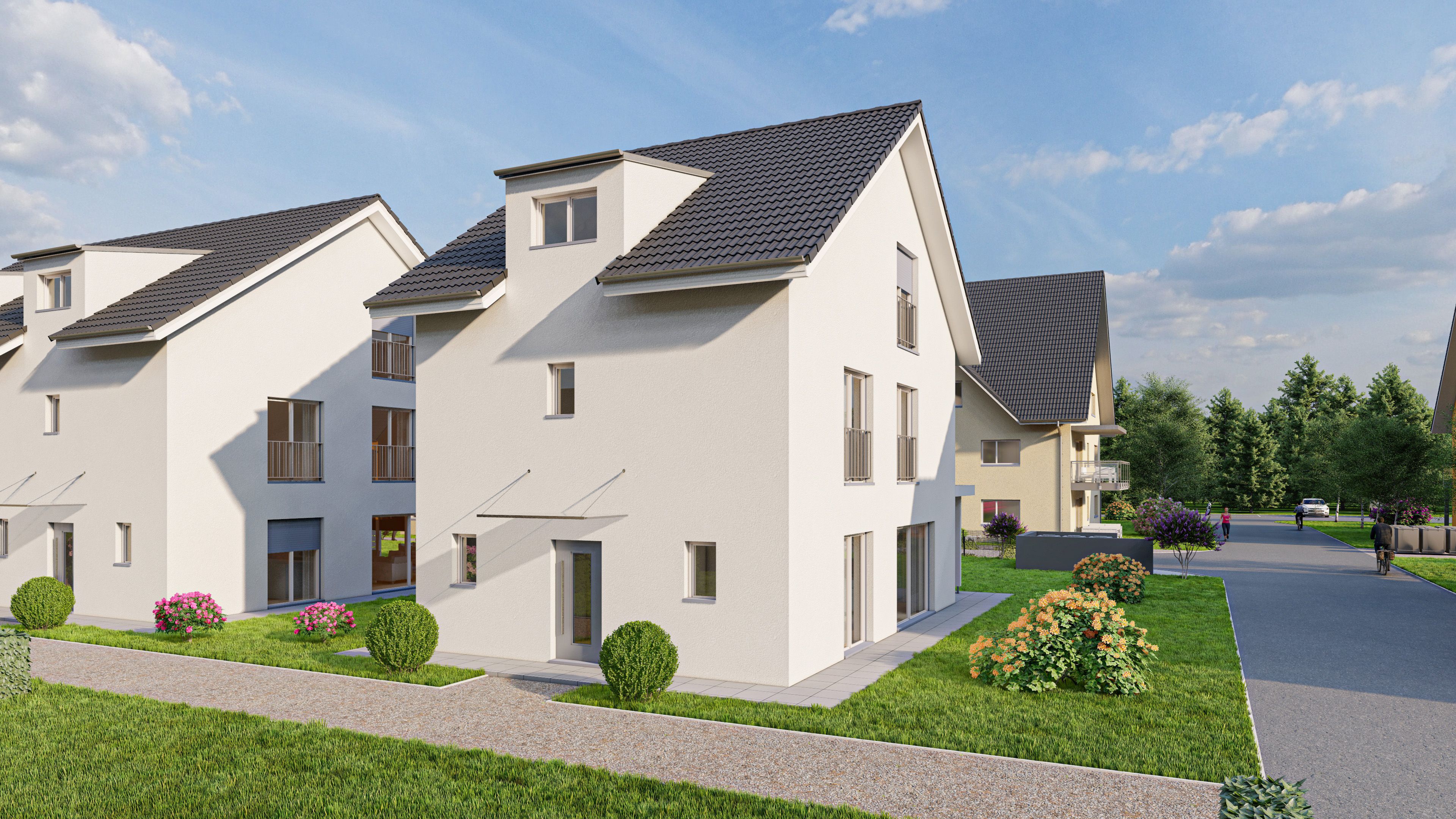Eingebettet im ruhigen Eichholz-Quartier, inmit­ten der Neubau-Mehr­familien­häuser des Gesamt­projekts, stehen drei Ein­familien- und zwei Doppel­ein­familien­häuser mit eigenem Land­anteil zur Aus­wahl. Die Architektur der Häuser ist schlicht klas­sisch gehalten und er­mög­licht damit viel Frei­raum zur Selbst­gestaltung. Der Aus­bau­standard lässt dabei nichts zu wünschen übrig: Eine Boden­heizung mit Wärme­pumpe und eine Fotovoltaik-Anlage auf dem Dach. Die da­zu­ge­hö­ri­gen Land­an­teile sind be­wusst mit wenig Be­grünung konzipiert, so dass Sie Ihre eigenen Garten­träume ver­wirklichen können.