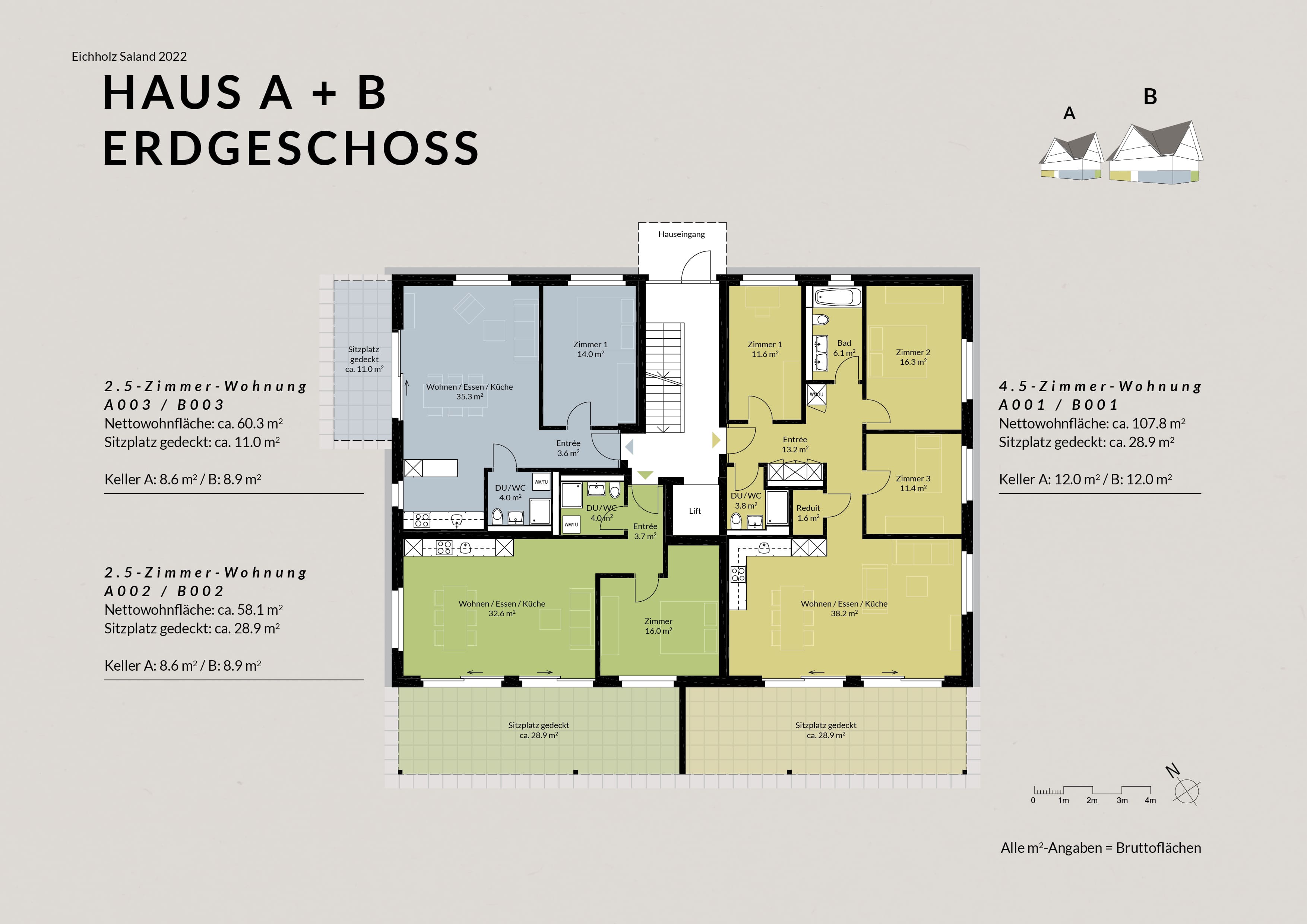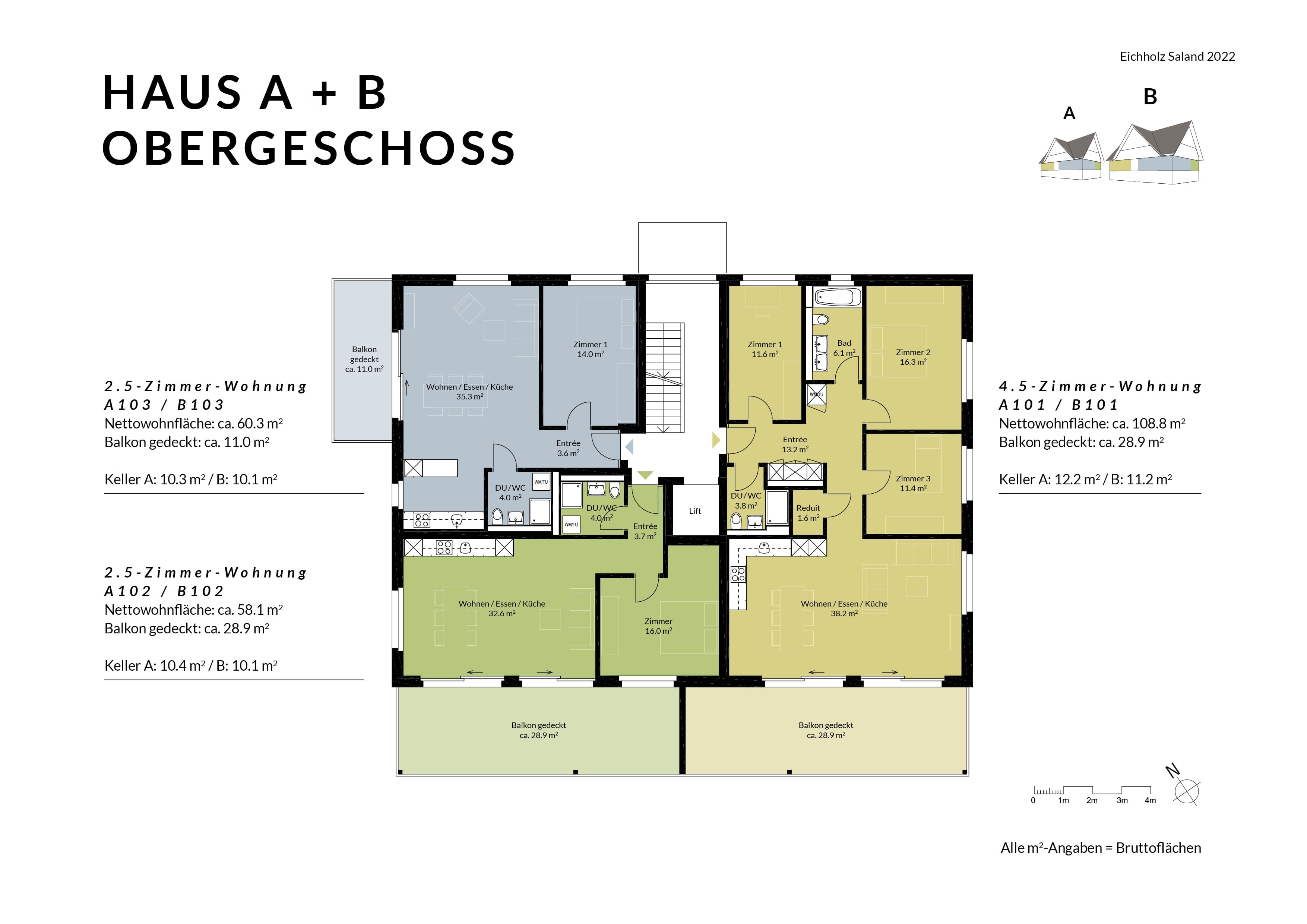Berechnung der Wohnfläche: der Wohnfläche: Die Flächenangaben auf den nachfolgend dargestellten Grundrissplänen sind Planmasse und können am Bau geringfügig abweichen. Bruttowohnfläche (BWF): Effektive Nutzfläche (Raumstempel) inkl. Aussen- und Innenwände sowie Schächte. Nettowohnfläche (NWF): Effektive Nutzfläche (Raumstempel) exkl. Aussenwände, inkl. Innenwände und Schächte.
